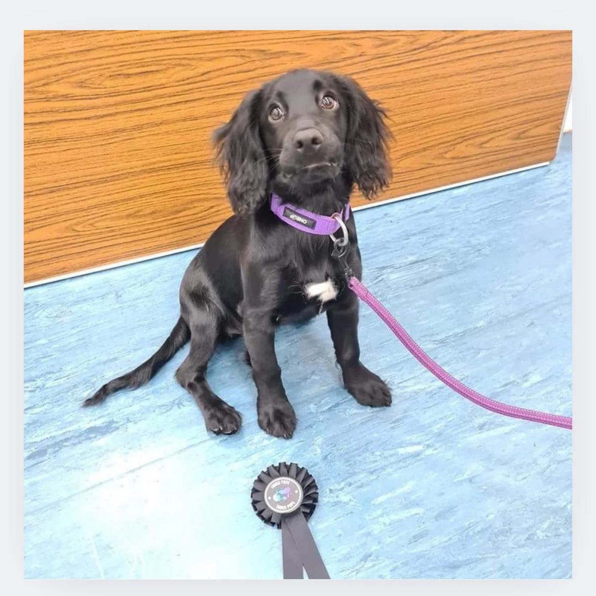 Woody the Springer Spaniel puppy graduating puppy classes.